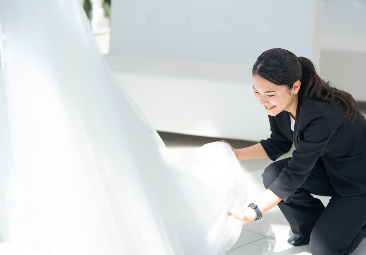 営業職は、お客様の人生に寄り添い、結婚式や特別な瞬間をトータルでプロデュースするポジションです。式の企画から当日の進行、衣裳・空間・演出の提案まで、多彩なフィールドで活躍できるのが魅力。さらに既存の枠にとらわれず、新たな価値を創造するチャレンジの場も広がっています。お客様の幸せを共にデザインし、感動を生み出すやりがいにあふれた仕事です。